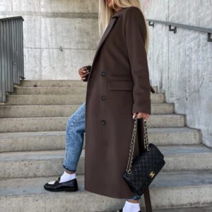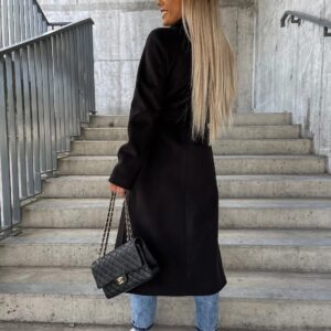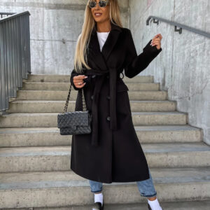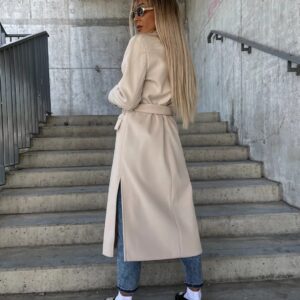 Double-breasted Lapel Split Jacket With Belt Winter Fashion Casual Long Sleeve Button Daily Coats For Women Clothing