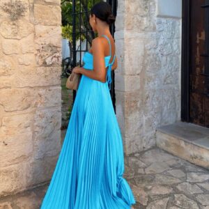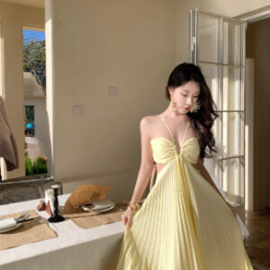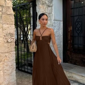 Ins Pleated Sleeveless Sling Dress Hollow High Waist Halter Robe Dresses For Evening Party Club Clothing Women