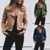 Loose Fashion Lapel Zip-up Jacket Cool Long Sleeve Zipper Closure Moto Biker Leather Jacket Womens Clothing