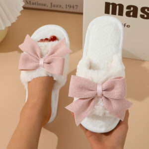 Women’s Winter Cute Bow Thick Bottom Non Slip Cotton Slippers